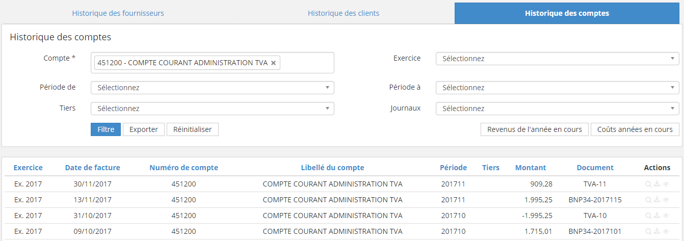 En cliquant sur ces montants, l'historique de ces comptes sera affiché