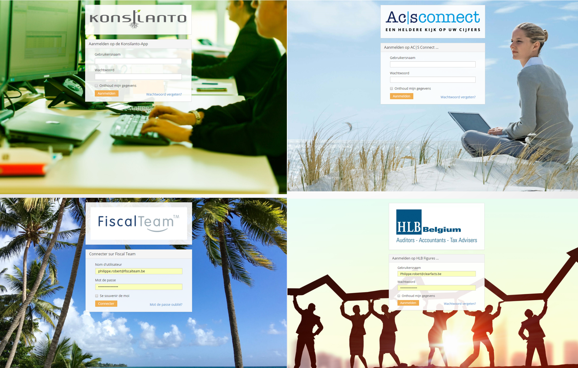 - Page de connexion avec une photo spécifique. Ceci permet de personnaliser l'écran de connexion qui reflète votre bureau comptable ou l'esprit de vos clients qui utilisent la plateforme.
