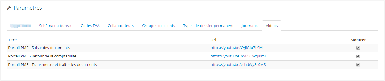 Configuration de votre bureau comptable Vidéos ClearFacts a créé différentes vidéos d'introduction pour vos clients. En temps que comptable, vous pouvez choisir les vidéos que vous voulez rendre disponible pour vos clients. Elles seront visible dans le menu d'Aide de la plateforme.